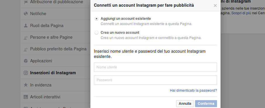 Per creare una inserzione su Instagram, è necessario possedere un account Facebook; non è necessario, al contrario, aprire un profilo su Instagram. Se possedete un account Instagram potete aggiungerlo sul vostro profilo in Business Manager o sulla vostra pagina aziendale.