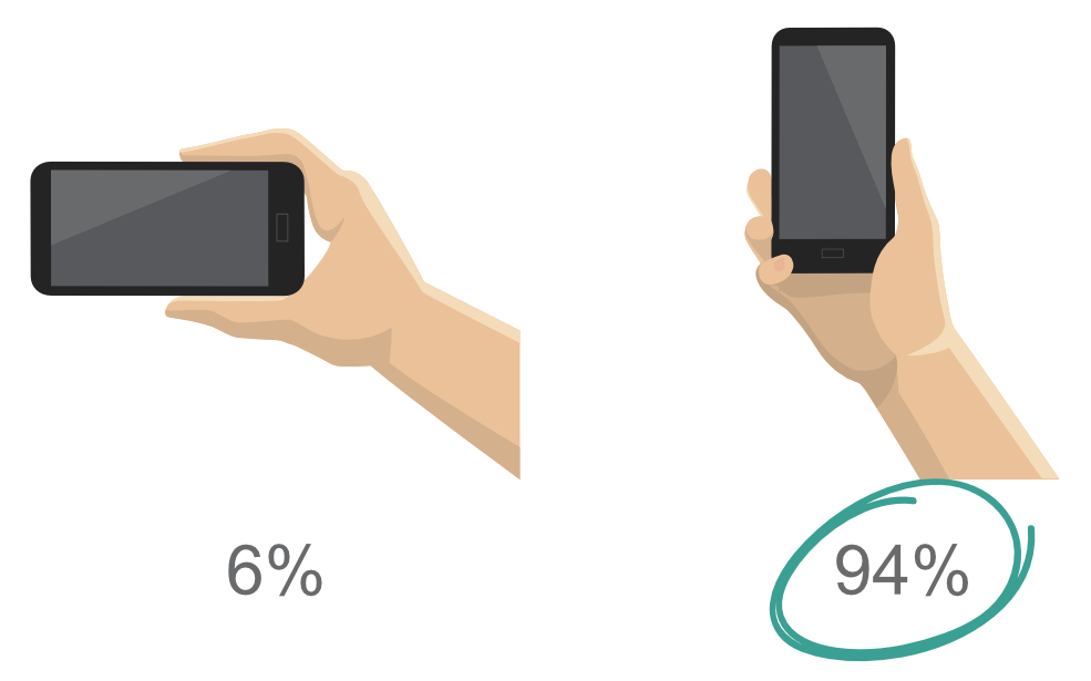 Le inquadrature verticali stanno spopolando su Facebook e Instagram Stories, e per quanto si possano affrontare approfonditi studi sociologici, il vero motivo di questa tendenza è semplice: ci viene naturale impugnare lo smartphone con una mano e reggerlo in verticale, scorrendo i contenuti su e giù con il pollice. D’altronde, perché scomodarci nel ruotare il dispositivo di 90 gradi (cambiando quindi impugnatura) per osservare un video o un’immagine full screen?