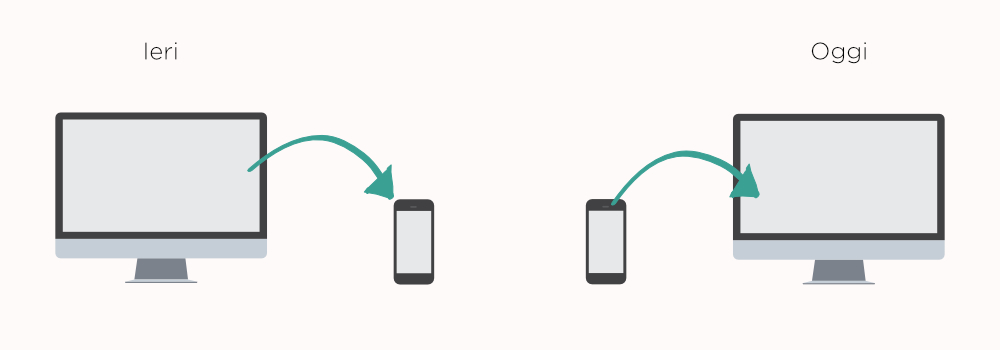 - Responsive: con il migliorare delle tecnologie (sia quelle legate allo sviluppo web che quelle dei device mobili stessi) si è pensato di adottare l’approccio responsive, ossia quello di avere un unico sito web che però potesse scalare e quindi visualizzare la propria interfaccia in maniera coerente anche sugli schermi più piccoli. Il “problema” però era legato all’approccio che si aveva nello sviluppo del sito. L’idea era infatti quella di partire dalla versione desktop del sito (che nella maggior parte dei casi è quella con l’interfaccia più ricca e quindi più pesante) per poi degradare sugli schermi più piccoli. Così facendo spesso ci si ritrova ad avere un sito che si adatta a tutte le risoluzioni, ma che può avere problemi legati alle performance, data anche la minore velocità che potenzialmente ha la navigazione in mobilità.