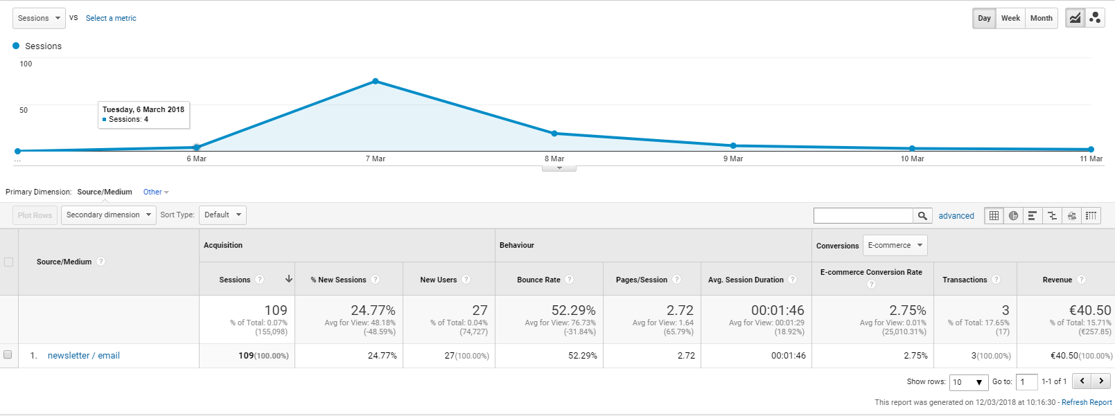 La newsletter ha portato nelle prime 24 ore a 3 acquisti sul sito web. Il dato però che riveste più importanza sono i 27 nuovi utenti che per la prima volta hanno visitato il sito di Abc Allenamento! Proprio sulle nuove acquisizioni dovrà incominciare il tuo percorso di fidelizzazione del cliente.